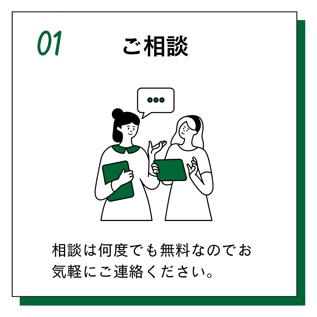 営業は一切行いません。私たちが各事業者の間に入るため、強引な営業やしつこい電話がくることもありません。