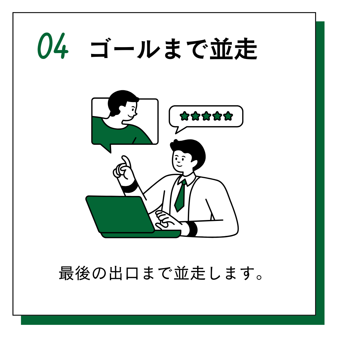 ご相談を頂いた内容については、最終的なゴールまで伴走いたします。